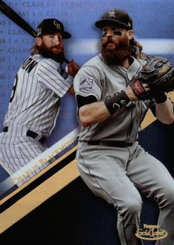 The Charlie Blackmon 2019 Topps Gold Label #22 Base card is 1 of 17 Charlie Blackmon's card variations in the 2019 Topps Gold Label set being tracked by Sports Card Investor, including Class 2, Class 3, Class 1 Black, Class 2 Black, and Class 3 Black.