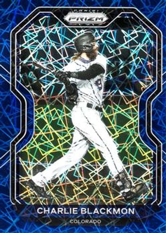 The Charlie Blackmon 2021 Prizm #150 Blue Velocity card is 1 of 52 Charlie Blackmon's card variations in the 2021 Prizm set being tracked by Sports Card Investor, including Base, Blue, Carolina Blue, Cosmic Haze, and Giraffe.