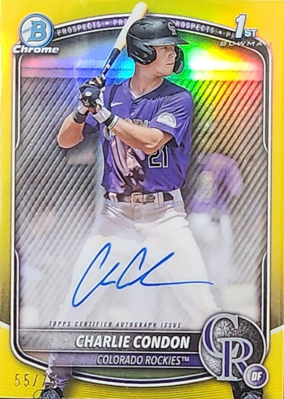 CHARLIE CONDON 2025 BOWMAN CHROME AUTO YELLOW REFRACTOR 1ST PROSPECT 15/75