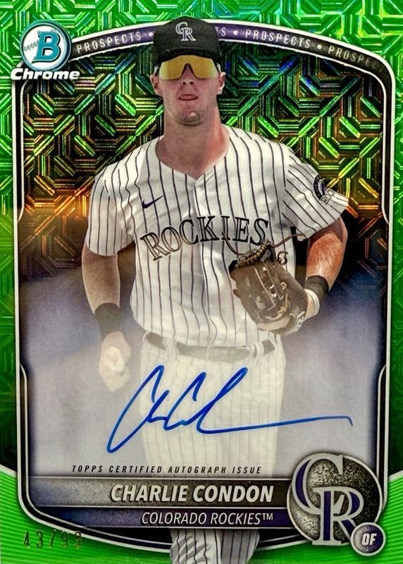 2025 Bowman Chrome Charlie Condon Mojo Green Autograph /99 Colorado Rockies