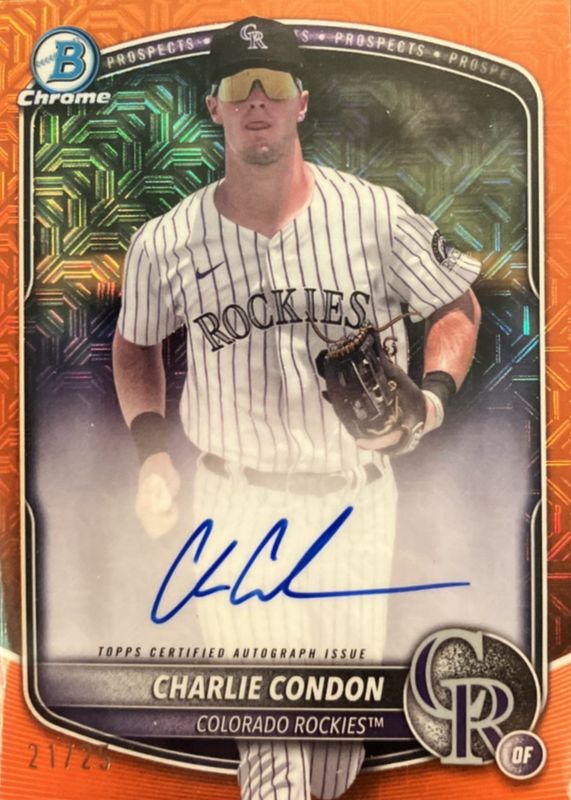 Charlie Condon 2025 Bowman Chrome On Card Auto ORANGE MOJO REFRACTOR /25 MEGA