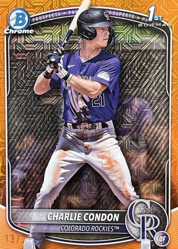 Charlie Condon 2025 Bowman Mega - 1st ORANGE MOJO /25 SSP - Rockies