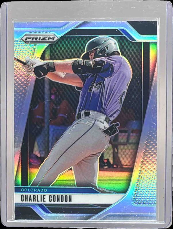 The Charlie Condon 2025 Prizm #142 Silver card is 1 of 69 Charlie Condon's card variations in the 2025 Prizm set being tracked by Sports Card Investor, including Base, Blue Ice, Glitter, Green, and Green Ice.