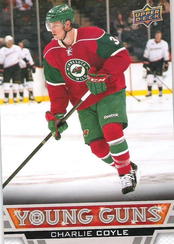 The Charlie Coyle 2013 Upper Deck #233 Young Guns - Jumbo Rookie card in Raw condition has not changed in price in the last 30 days and was last sold for $3.99 .