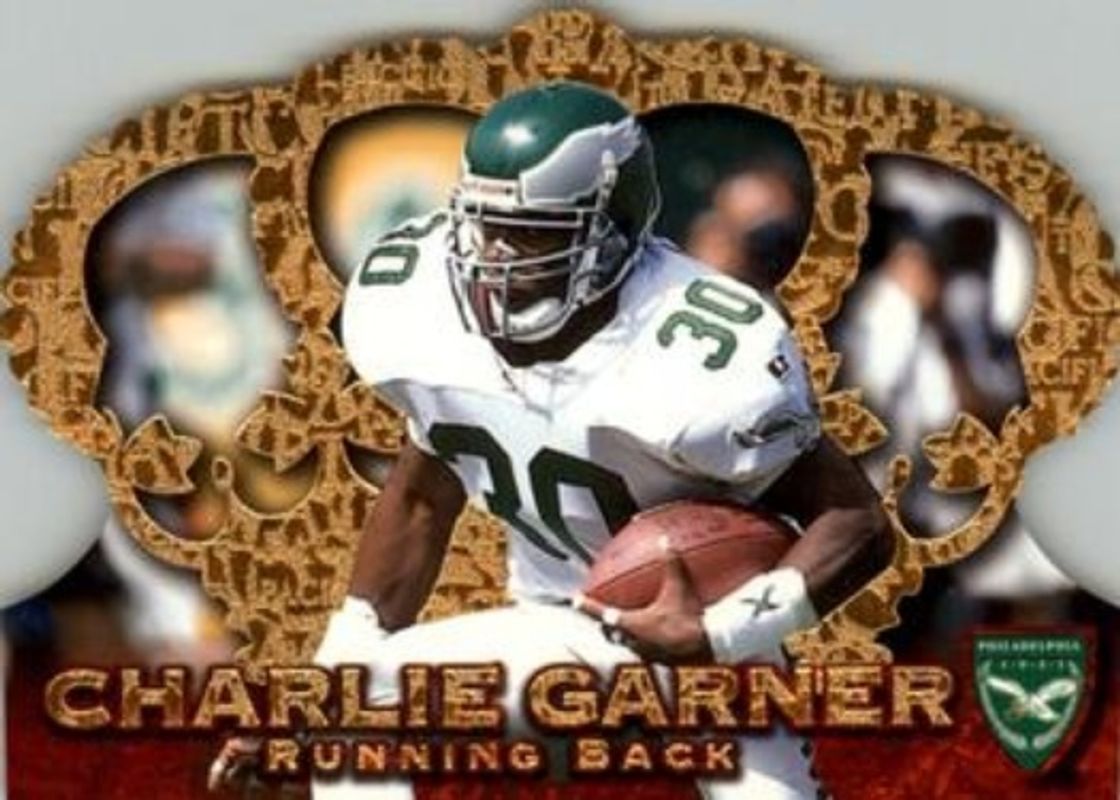 The Charlie Garner 1996 Pacific Crown Royale #CR-142 Base card is 1 of 3 Charlie Garner's card variations in the 1996 Pacific Crown Royale set being tracked by Sports Card Investor, including Blue, and Silver.