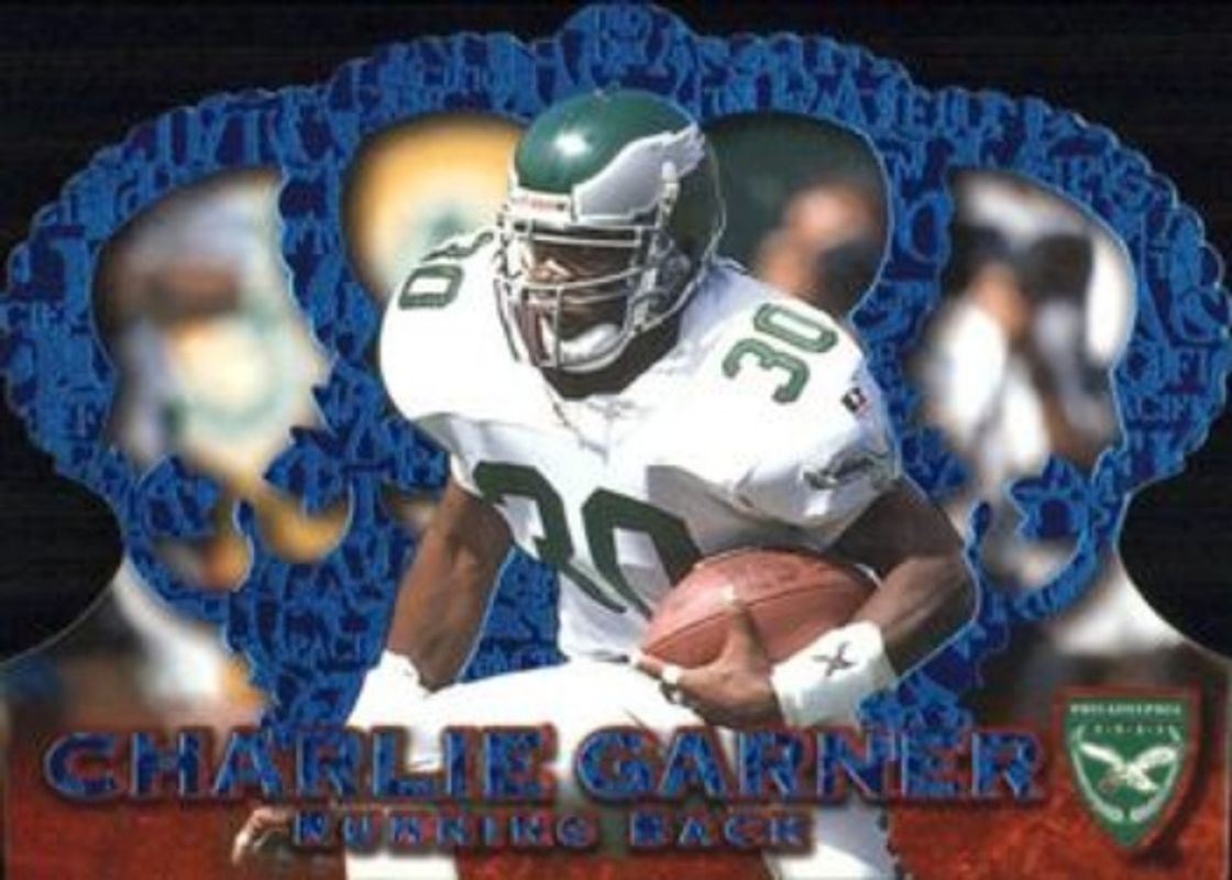 The Charlie Garner 1996 Pacific Crown Royale #CR-142 Blue card is 1 of 3 Charlie Garner's card variations in the 1996 Pacific Crown Royale set being tracked by Sports Card Investor, including Base, and Silver.
