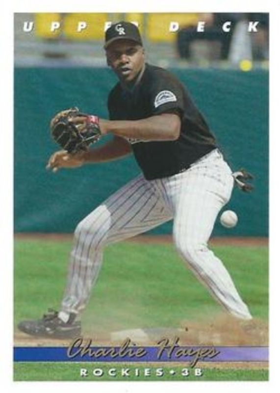 The Charlie Hayes 1993 Upper Deck #647 Base card is 1 of 2 Charlie Hayes' card variations in the 1993 Upper Deck set being tracked by Sports Card Investor, including Gold Hologram.