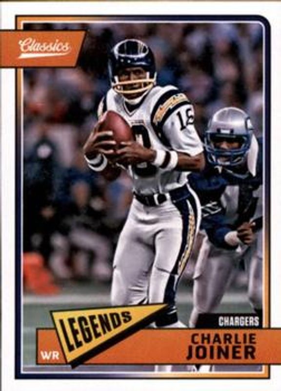 The Charlie Joiner 2018 Classics #114 Base card is 1 of 20 Charlie Joiner's card variations in the 2018 Classics set being tracked by Sports Card Investor, including Red Back /299, Blue Back (1st Edition) /175, Timeless Tributes - Gold /99, Blank Back /50, and Green Back (2nd Edition) /40.