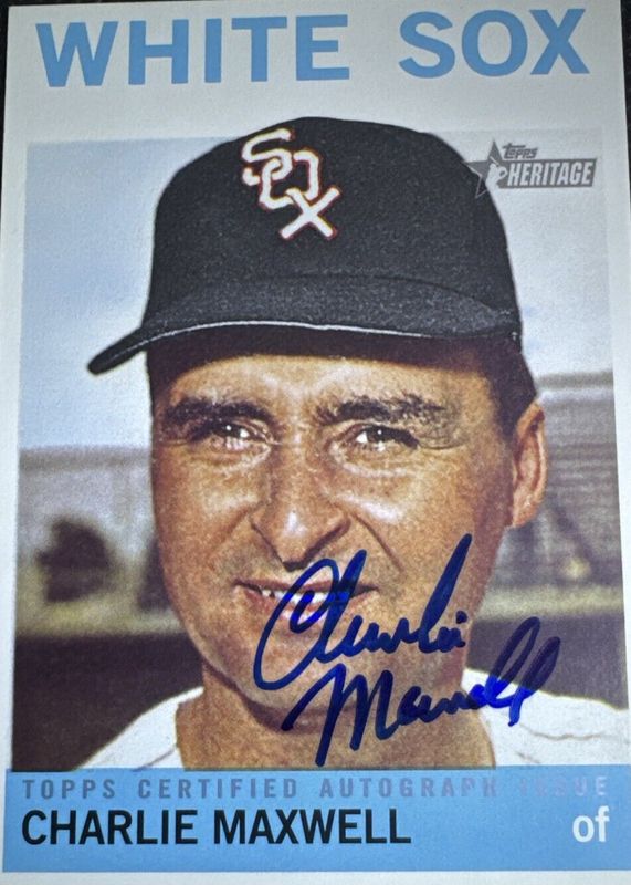 This card is 1 of 2 Charlie Maxwell's card variations in the 2013 Topps Heritage set being tracked by Sports Card Investor, including Real One Autographs - Red Ink /64.