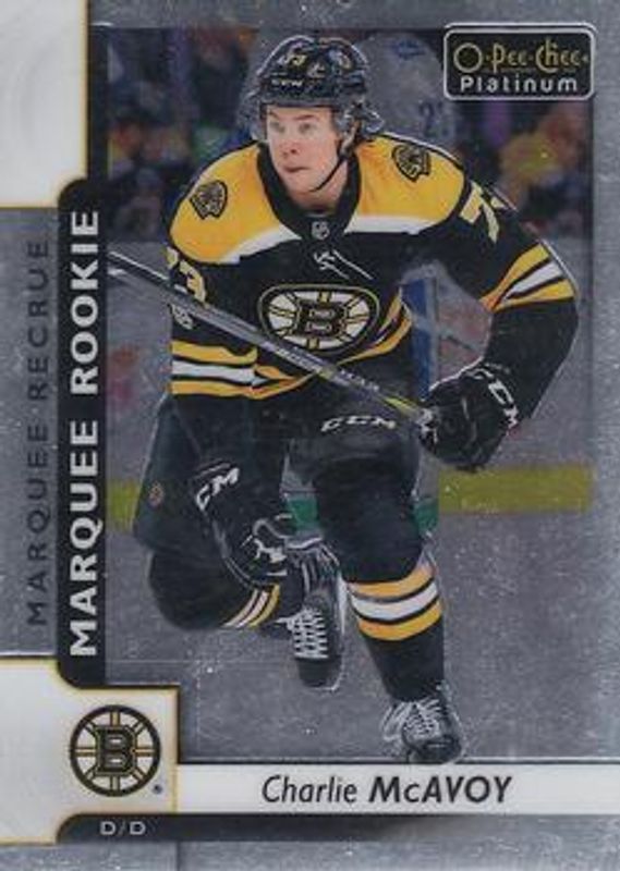 The Charlie McAvoy 2017 O-Pee-Chee Platinum #155 Base Rookie card is 1 of 37 Charlie McAvoy's card variations in the 2017 O-Pee-Chee Platinum set being tracked by Sports Card Investor, including Rainbow, Violet Pixels, Red Prism /199, Royal Blue Cubes /99, and Seismic Gold /50.