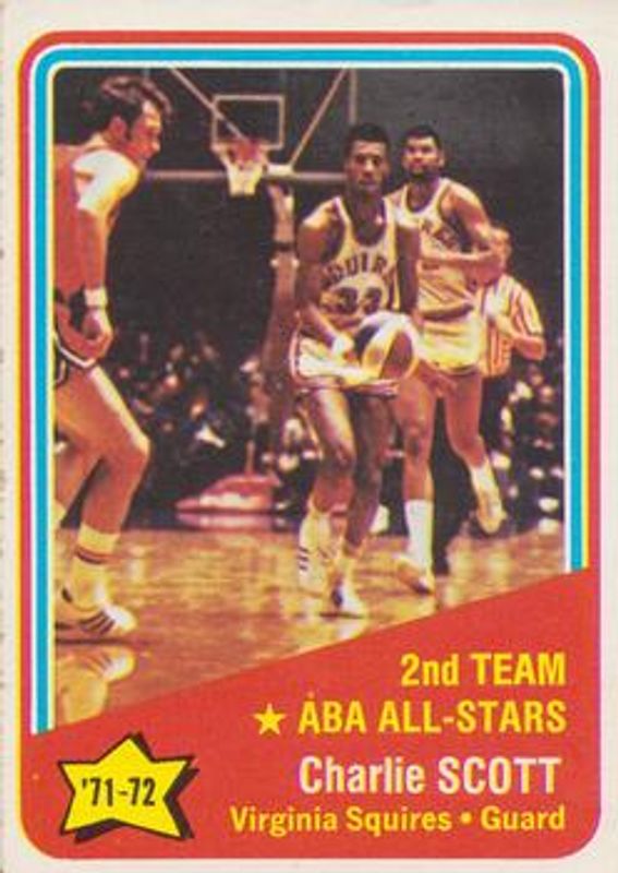 The Charlie Scott 1972 Topps #258 Base card is 1 of 2 Charlie Scott's card variations in the 1972 Topps set being tracked by Sports Card Investor, including Base.