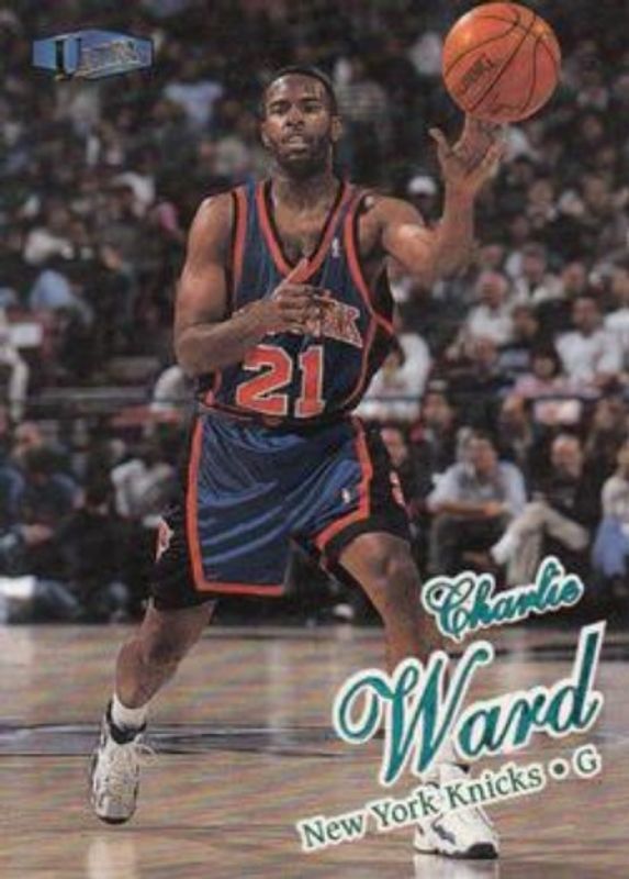 The Charlie Ward 1997 Fleer Ultra #237 Base card is 1 of 4 Charlie Ward's card variations in the 1997 Fleer Ultra set being tracked by Sports Card Investor, including Gold Medallion, Platinum Medallion /100, and Masterpiece /1.
