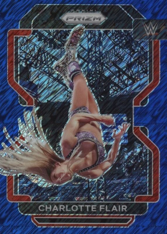 Charlotte Flair 2022 Prizm WWE #180 FOTL Blue Shimmer /10 RAW Price Guide