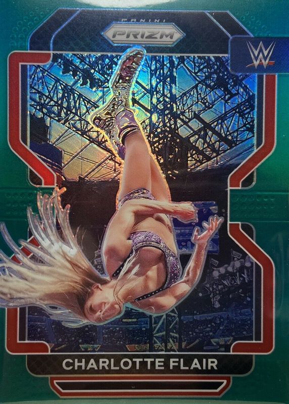 CHARLOTTE FLAIR 2022 Prizm WWE #180 ~ GREEN PRIZM REFRACTOR ~ Wrestling Card