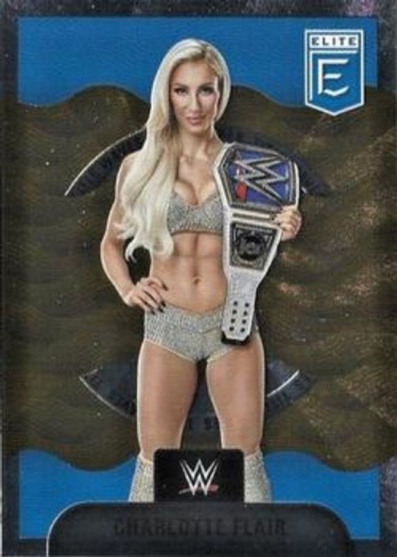 The Charlotte Flair 2023 Elite WWE #2 Title Waves card is 1 of 43 Charlotte Flair's card variations in the 2023 Elite WWE set being tracked by Sports Card Investor, including Base, Green, Pink, Razzle Dazzle, and Red.