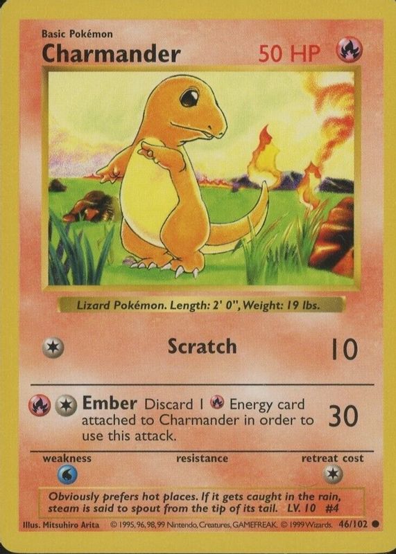 The Charmander 1999 Pokemon Game #46 Shadowless card in Raw TCG (Moderately Played) condition has moved up $3.72 (+107%) in the last 30 days and was last sold for $7.19 .