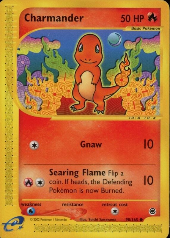 The Charmander 2002 Expedition #098/165 Base card in Raw TCG (Near Mint) condition has not changed in price in the last 30 days and was last sold for $20.00 .