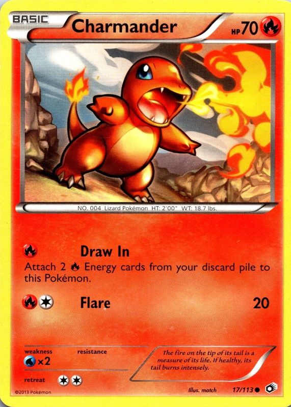 The Charmander 2013 Black & White: Legendary Treasures #017/113 Base card in Raw TCG (Near Mint) condition has moved down -$0.99 (-33.1%) in the last 30 days and was last sold for $2.00 .
