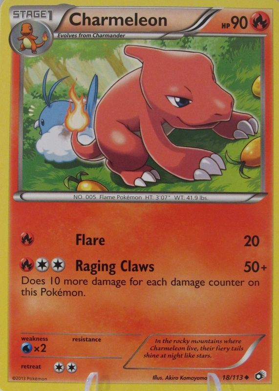 The Charmeleon 2013 Black & White: Legendary Treasures #018/113 Base card in Raw TCG (Lightly Played) condition has moved up $0.11 (+1.9%) in the last 30 days and was last sold for $5.85 .