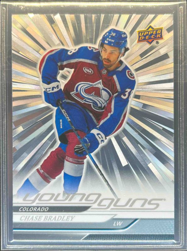 The Chase Bradley 2024 Upper Deck Extended Series #712 Outburst Rookie card is 1 of 27 Chase Bradley's card variations in the 2024 Upper Deck Extended Series set being tracked by Sports Card Investor, including Base, Young Guns Base, Clear Cut, Young Guns - Clear Cut, and Young Guns - Outburst Silver.