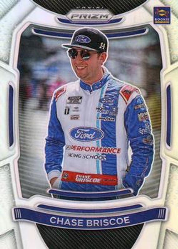 The Chase Briscoe 2021 Prizm NASCAR #27 Silver Rookie card is 1 of 39 Chase Briscoe's card variations in the 2021 Prizm NASCAR set being tracked by Sports Card Investor, including Base, Blue, Hyper Blue & Carolina Blue, Hyper Green & Yellow, and Hyper Red & Blue.