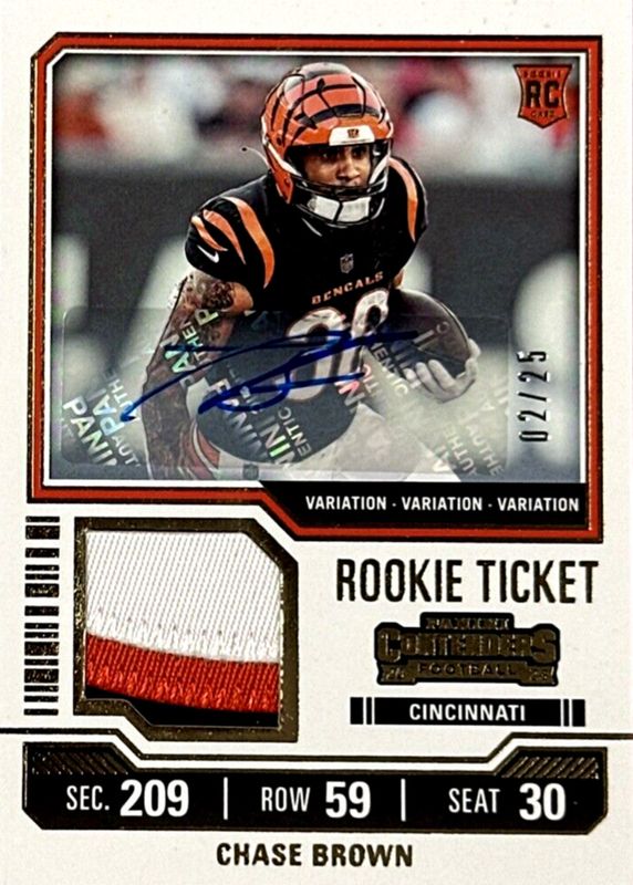 Chase Brown 2023 Contenders #TS5 Rookie Ticket Swatches Autographs /25 RAW Price Guide