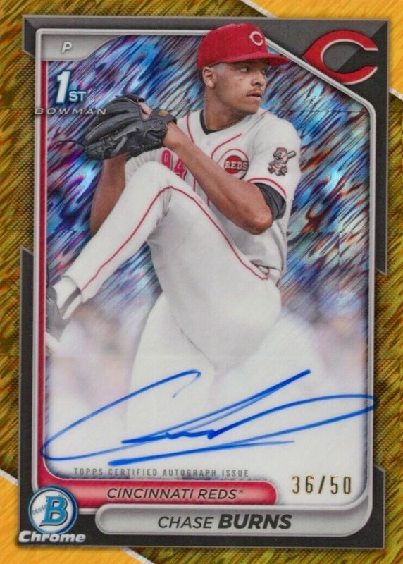 Chase Burns /50 - 2024 Bowman Draft - Chrome Prospect Auto #CPA-CB Gold Shimmer