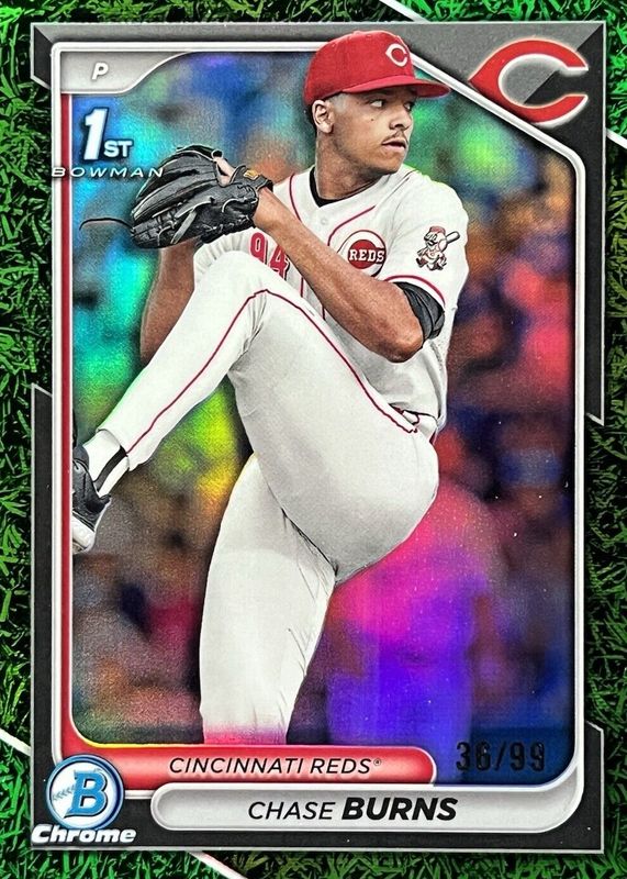 2024 Bowman Chrome Chase Burns 1st Bowman Green Grass Refractor /99 #BDC-55 Reds