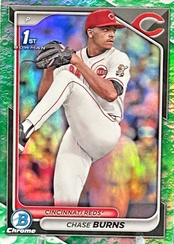This card is 1 of 50 Chase Burns' card variations in the 2024 Bowman Draft set being tracked by Sports Card Investor, including Chrome (1st), Chrome - Bubble Gum (1st), Chrome - Peanuts (1st), Chrome - Pearl Refractor (1st), and Chrome - Popcorn (1st).