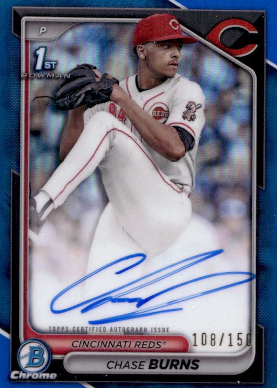 2024 Bowman Draft Chase Burns Chrome Auto Blue Refractor 1st Prospect #/150 Reds