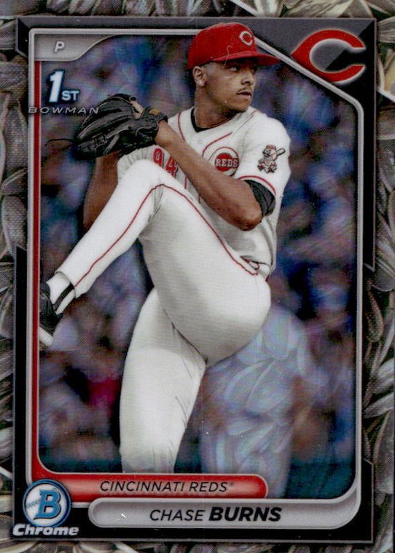 This card is 1 of 50 Chase Burns' card variations in the 2024 Bowman Draft set being tracked by Sports Card Investor, including Chrome (1st), Chrome - Bubble Gum (1st), Chrome - Lunar Glow Refractor (1st), Chrome - Peanuts (1st), and Chrome - Pearl Refractor (1st).