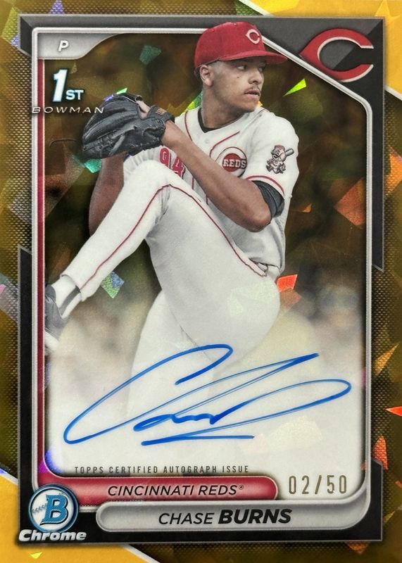 2024 Bowman Draft Sapphire 1st Chrome Prospect Gold Auto /50 Chase Burns Reds