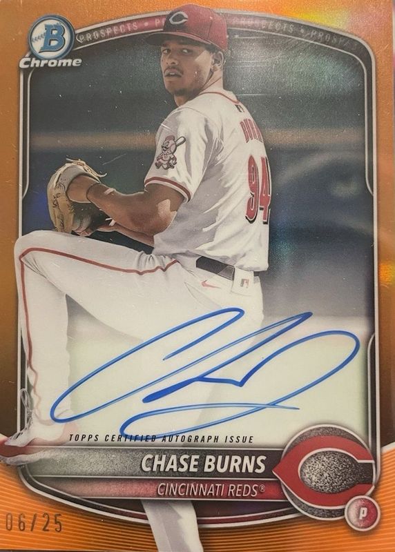 Chase Burns 2025 Bowman #CPA-CB Chrome Prospect Auto - Orange Refractor /25 RAW Price Guide