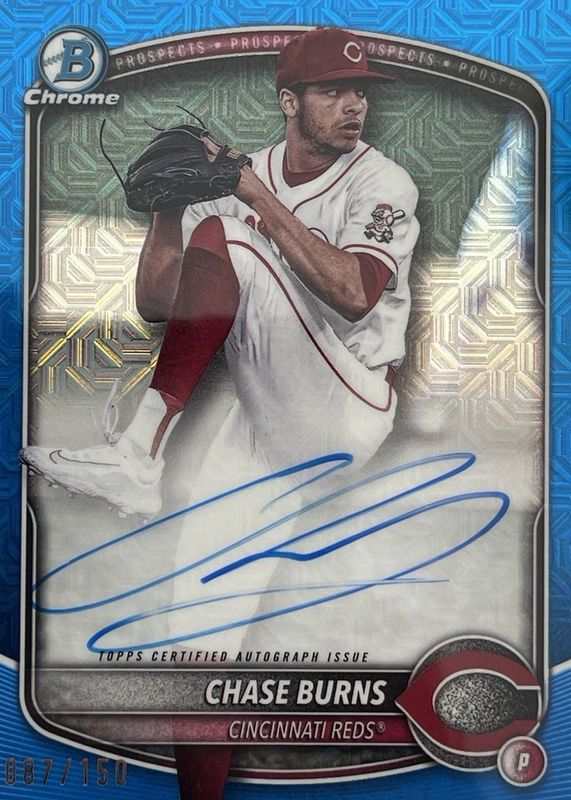 2025 Bowman Chrome - Chase Burns (Blue Mojo Refractor On Card Auto) /150