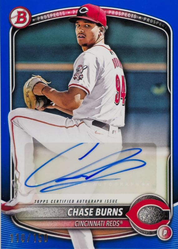 2025 Bowman Chase Burns Prospect Auto Blue Border /150 #BPA-CB Cincinnati Reds