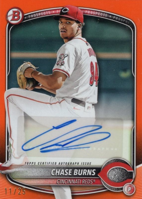 Chase Burns 2025 Bowman #BPA-CB Prospect Auto - Orange Border /25 RAW Price Guide