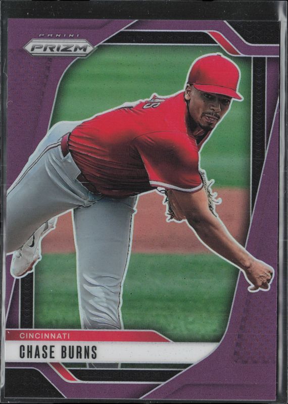 The Chase Burns 2025 Prizm #86 Purple /149 card is 1 of 84 Chase Burns' card variations in the 2025 Prizm set being tracked by Sports Card Investor, including Base, Blue Ice, Glitter, Green, and Green Ice.