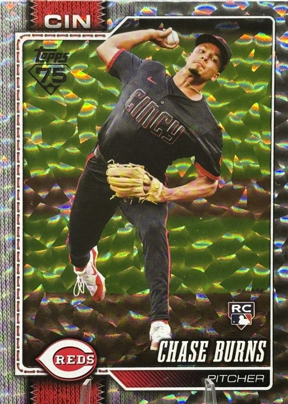 3-2026 Topps Series 1 #T91-73 Chase Burns Silver Crackle Foil parallel base RC