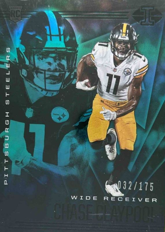 The Chase Claypool 2020 Illusions #31 Trophy Collection Teal /175 Rookie card in Raw condition has not changed in price in the last 30 days and was last sold for $0.99 .