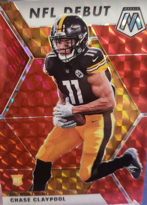 The Chase Claypool 2020 Mosaic #278 NFL Debut - Choice Fusion Red /80 Rookie card in Raw condition has not changed in price in the last 30 days and was last sold for $2.50 .