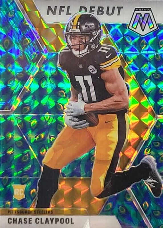 The Chase Claypool 2020 Mosaic #278 NFL Debut - Choice Peacock /(SSP) Rookie card in Raw condition has not changed in price in the last 30 days and was last sold for $15.99 .