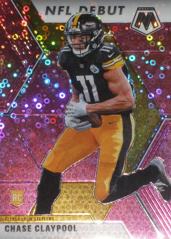 The Chase Claypool 2020 Mosaic #278 NFL Debut - No Huddle Pink /20 Rookie card in Raw condition has not changed in price in the last 30 days and was last sold for $20.00 .