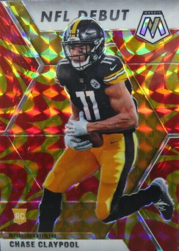 The Chase Claypool 2020 Mosaic #278 NFL Debut - Reactive Gold Rookie card in Raw condition has not changed in price in the last 30 days and was last sold for $1.11 .