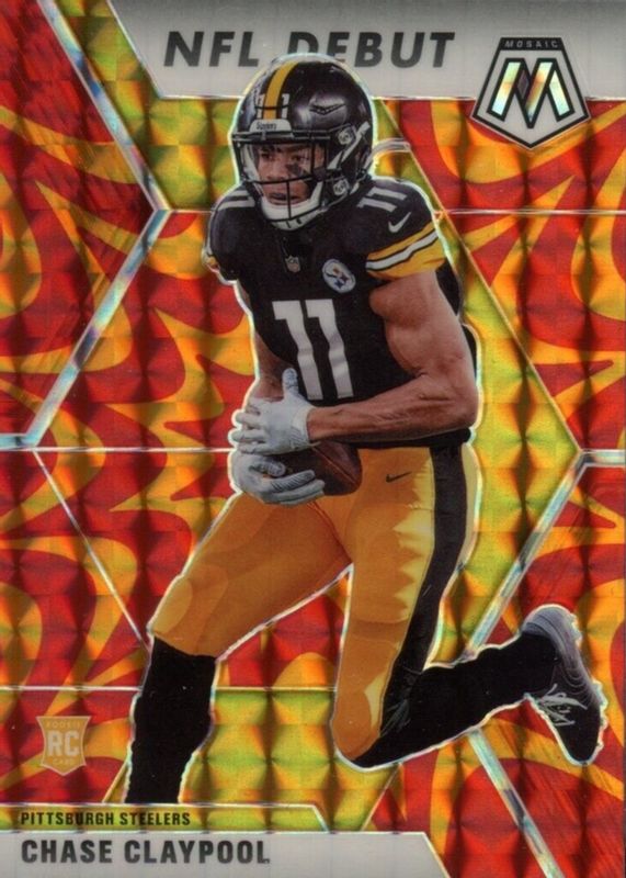 The Chase Claypool 2020 Mosaic #278 NFL Debut - Reactive Orange Rookie card in Raw condition has not changed in price in the last 30 days and was last sold for $2.24 .