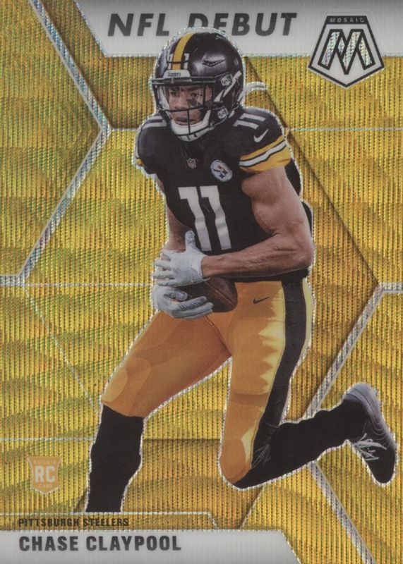 The Chase Claypool 2020 Mosaic #278 NFL Debut - Tmall Gold Wave /17 Rookie card in Raw condition has not changed in price in the last 30 days and was last sold for $67.99 .