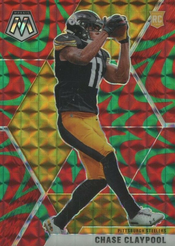 This card is 1 of 71 Chase Claypool's card variations in the 2020 Mosaic set being tracked by Sports Card Investor, including Base, NFL Debut, Choice Red & Green, Green, and NFL Debut - Choice Red & Green.