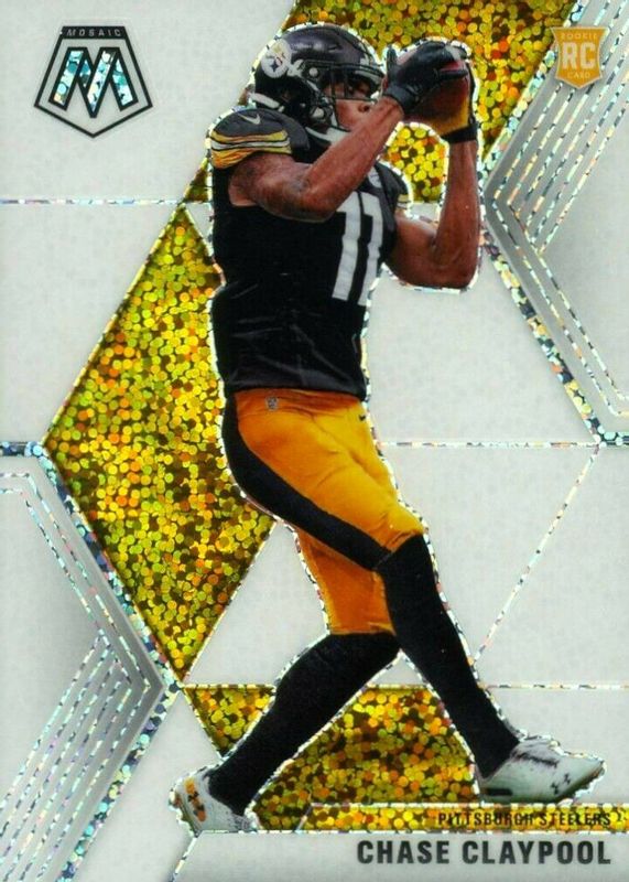 This card is 1 of 71 Chase Claypool's card variations in the 2020 Mosaic set being tracked by Sports Card Investor, including Base, NFL Debut, Choice Red & Green, Green, and NFL Debut - Choice Red & Green.