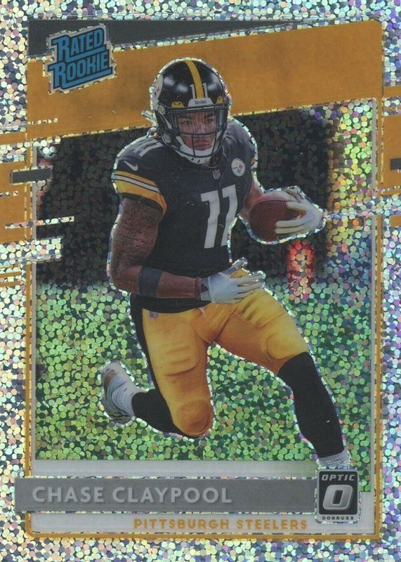 This card is 1 of 47 Chase Claypool's card variations in the 2020 Optic set being tracked by Sports Card Investor, including Base, Blue Hyper, Blue Scope, Bronze, and Green Velocity.