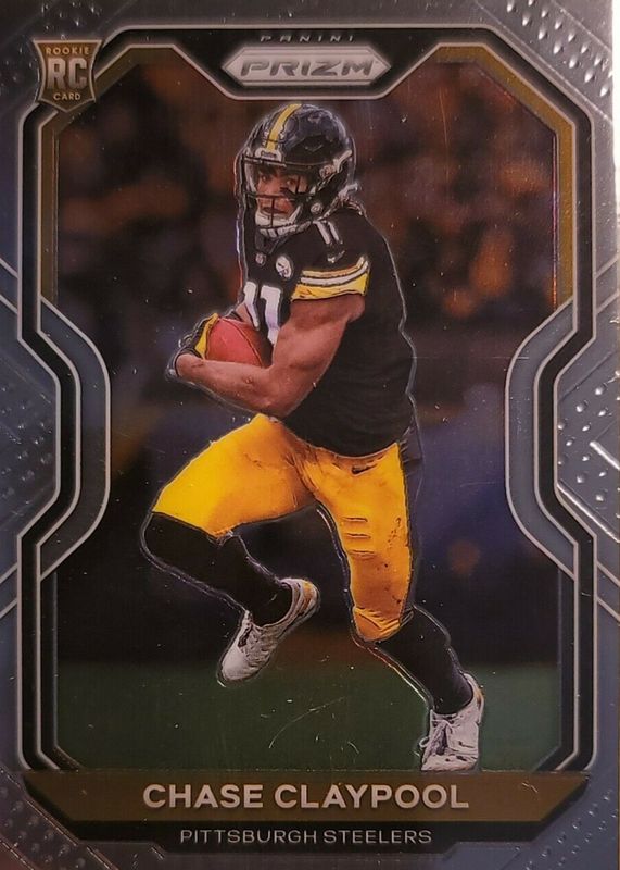 This card is 1 of 61 Chase Claypool's card variations in the 2020 Prizm set being tracked by Sports Card Investor, including Disco, Green, Lazer, Light Blue, and Neon Green Pulsar.