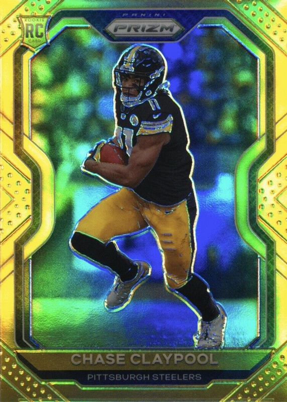 This card is 1 of 61 Chase Claypool's card variations in the 2020 Prizm set being tracked by Sports Card Investor, including Base, Disco, Green, Lazer, and Light Blue.